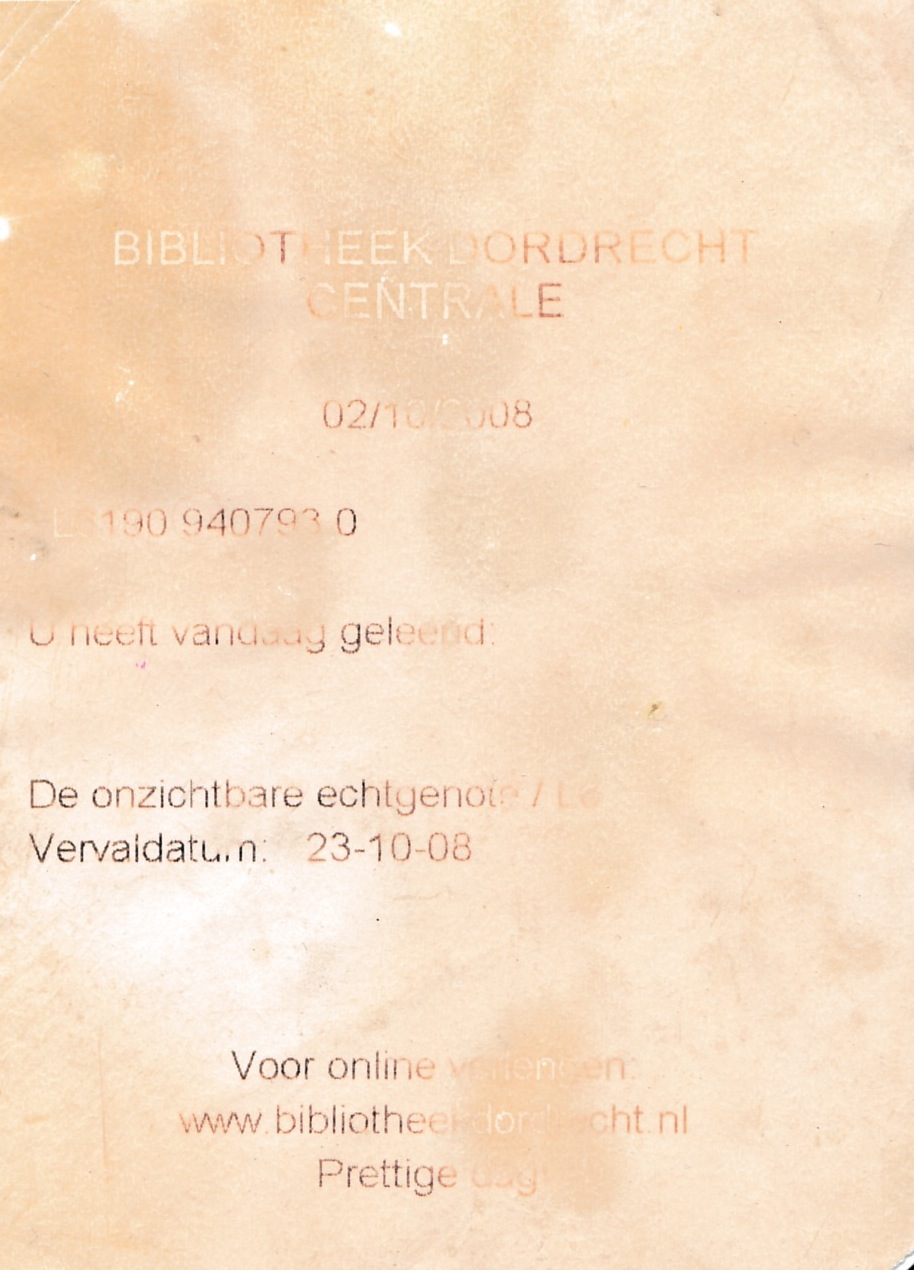 (Gevonden bibliotheekbon/De onzichtbare echtgenote).Jan Barel